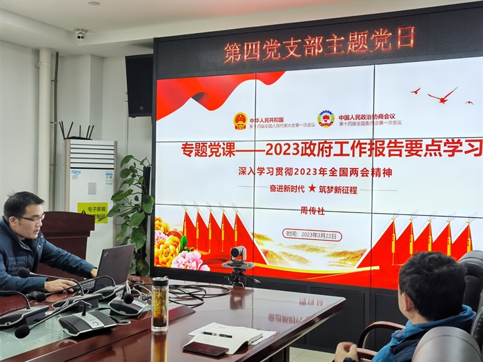 支部书记周传社以“2023政府工作报告要点学习”为题,组织第四党支部全体党员、入党积极分子和职工深入学习贯彻2023年全国两会精神。轮值党员祝倩对已公开的议案建议和提案进行了梳理,从保障粮食安全、农业人才培养、农业现代化三方面介绍了代表提案。