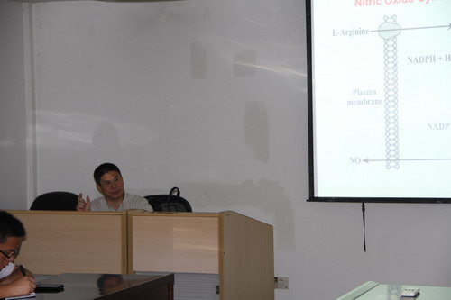 期间,伍国耀做了题为“Cell Signaling Pathways in Nutrition” 的学术报告。报告从Gaseous, cAMP and cGMP Signaling ,Calcium and IP3 Signaling ,mTOR Signaling,AMPK Signaling,Integrin Signaling 这五个与营养相关的细胞信号通路进行了详细的阐述与讲解,最后提出应用饲料添加剂促进动物细胞转导,应用营养或荷尔蒙方式提高胎盘着床和胎盘形成,从而将这些理论应用到动物生产之中。随后,伍国耀与相关科研人员和研究生就氨基酸研究领域的问题进行了深入交流和沟通。