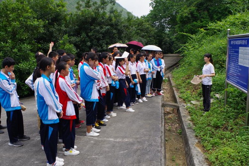 5月18日,环江站组织驻站研究生会为主体的科普志愿者,开展了“中学生科普开放日”活动。环江县第三中学三十余名学生会代表,在副校长卢云、办公室主任吴江建、团支部书记胡晓提等老师的带领下,参观了环江站木连综合试验区。科普志愿者们分别向来访师生介绍了环江站的发展历史、站内科学家在“喀斯特峰丛洼地脆弱农田环境的生态重建”的科研示范成果,并引导他们参观了喀斯特坡地植被-土壤-表层岩溶带三维水土过程监测小区、木连流域多尺度生态水文监测试验场、耕作干扰与碳氮循环实验小区、外源氮输入与人工草地碳氮循环实验场、气象观测场等野外试验场地,与中学生们互动体验了外源氮输入与人工草地碳氮循环实验场的土壤N20气体样品的采集操作。卢云表示,此次科普开放日活动给初中学生们一个感受喀斯特区域生态学魅力的机会,这将有助于提高孩子们对生物、地理等科学知识学习的热情和兴趣;并希望环江站的科普志愿者今后能走进校园,开设科普课堂,向更多的在校学生传播喀斯特区域的生态学知识,提高学生们的生态学素养与环保意识。