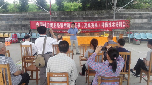 此外,近期环江站积极整合站内的科技资源,一方面,依托环江站与广西毛苗瑶食品有限公司组建的广西院士工作站平台,联合环江县水产畜牧兽医局、湖南大湘农环境科技股份有限公司、湖南三和生物科技有限公司,在环江县东兴镇对县域内近20余位规模化专业养殖户开展了“环保健康型生猪养殖技术”专题的现场指导培训;另一方面,依托“国家重点研发计划”的项目计划的实施,联合广西南亚热带农业科学研究所、环江盛世琼园种养业有限公司共同在环江县思恩镇、大才乡,面向大才乡已经种植澳洲坚果的农户以及对坚果行业有兴趣的企业、农户等潜在推广对象,举办普及澳洲坚果的种植、修剪、施肥等管理技术知识,并针对坚果行业内所关心的澳洲坚果的市场需求、产量和收益状况、产品质量等方面的问题进行详细解答。