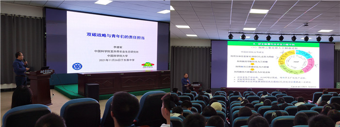 11月26日,中国科学院亚热带农业生态研究所李德军研究员为长沙市东雅中学高一年级师生带来了一场以《双碳战略与青年们的责任担当》为主题的科普讲座。