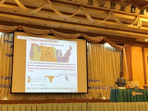 吴信主要围绕硒在饲料-食物链中的应用、微量元素在动物-植物和食物中的重要性和必要性以及硒在动物营养和食物链中的相关研究进展做了系统的阐述;并向大会介绍了世界中医药学会联合会中医与农业产业化分会的理念与发展。