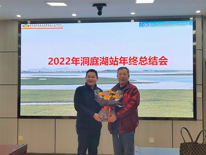 会议还为洞庭湖站2022年退休职工王勇研究员举行了荣退仪式。谢永宏对王勇在洞庭湖早期建设、科技支撑和方向引领等方面的贡献表达了感谢。