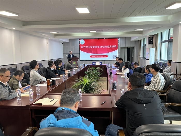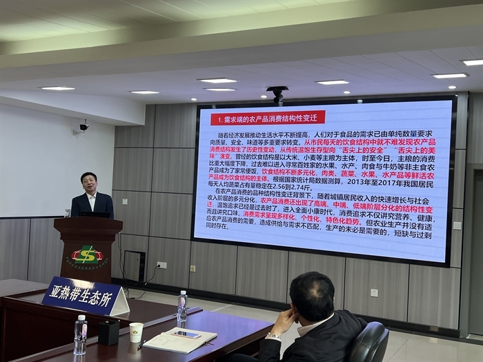 陈文胜作了题为“南方农业发展需要应对的现实挑战”的报告,系统介绍了亚热带地区农业的特点,并从大变局下中国农业发展的重大结构性变迁、南方农业高质量发展需要应对的三大挑战、围绕高质高效推进南方农业赋能变革等三方面进行了报告。陈文胜指出,在中国经济社会多重转型的大背景下,粮食主产区发生南北历史性大逆转,需要顺应食物消费结构变化趋势,从南方人地关系、地理禀赋、资源环境三个维度,加快推动科技服务赋能、地域资源赋能、绿色生态赋能的南方特色农业高质量发展。