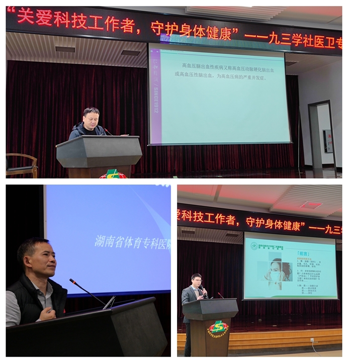 党的二十大报告提出“实施科教兴国战略,强化现代化建设人才支撑”,深入“推进健康中国建设,把保障人民健康放在优先发展的战略位置”,以健康中国建设全面推进中国式现代化。本次科普讲座是深入学习贯彻落实党的二十大精神的具体行动。来自湖南省人民医院神经外科主任医师黄萌异重点围绕高血压预防、日常生活管理、家庭监测护理等问题,作《脑出血性疾病的防治》主题报告;湖南省体育专科医院康复科主任黄齐重点围绕常见运动损伤种类、运动康复治疗等问题,作《运动损伤的预防和处理》主题报告;湖南中医药大学第二附属医院副主任医师田毅重点围绕肤质判定、日常护肤、常见皮肤病治疗、皮肤医美修复等问题,作《常见皮肤病的防治》主题报告。专家们结合自身丰富经验和实践中遇到的具体医疗案例,对大家所思所惑、关心关注的健康问题进行了深入浅出、精准实用的讲解。同时开展现场问诊,对大家的日常饮食、心理健康、合理用药和适度运动进行了指导和建议。
