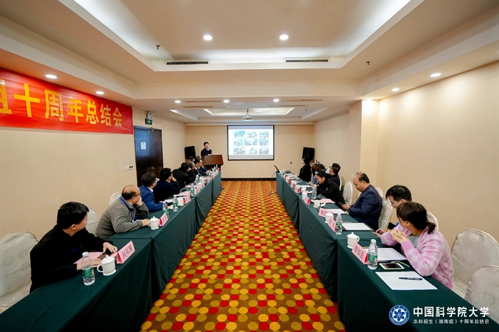 11月18日至19日,中国科学院大学湖南本科招生组十周年总结会在湖南岳阳召开。中国科学院大学副校长、湖南招生组共同组长董纪昌,亚热带生态所原副所长、招生组共同组长王新洪,亚热带生态所副所长陈洪松、党委副书记文再坤,中国科学院大学组织部部长谭红军、人力资源部部长黄辉、本科部部长燕敦验、招生办副主任尹伊以及湖南招生组老师参加了会议。会议由黄辉主持。