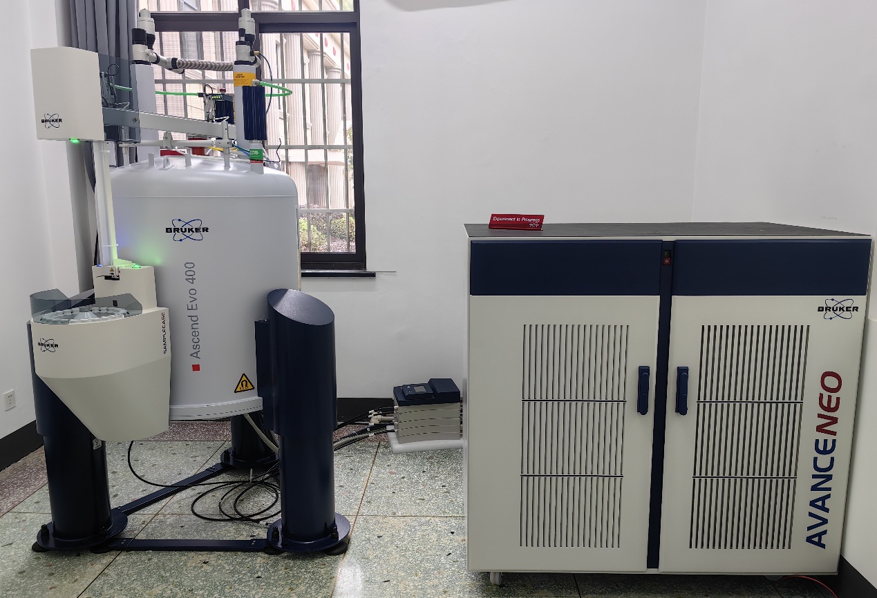 400 MHz超导核磁共振波谱仪,配有超屏蔽磁体,双射频通道,固体、液体探头,ATM自动调谐/匹配附件,变温单元。