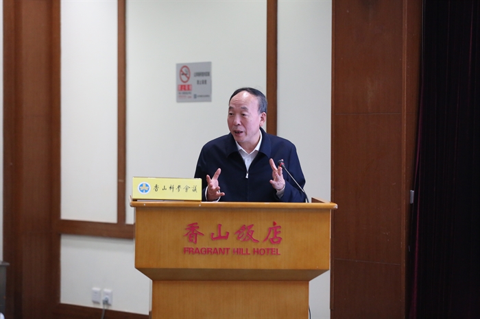 会议由执行主席印遇龙研究员、陈洪松研究员、赵春江研究员、张佳宝研究员、徐明岗教授主持。香山会议办公室主任田永生致欢迎辞。陈洪松对参会专家学者的到来表示欢迎和感谢,并介绍了本次会议的主要目的和讨论的议题。他指出,我国亚热带地区涉及16个省市(含台湾省),面积约占全国国土面积的1/4,人口约占全国总人口的一半。该区域光热水资源丰富、雨热同期,是我国传统优势农业主产区,粮食作物产量约占41%(稻谷占比60%以上),猪牛羊肉占比53%,更是油料、蔬果茶、淡水产品主产区。但从1990年代开始,我国南方省份粮食生产地位逐步下降,进入“北粮南调”时代。由于水资源限制和环境压力,我国北方粮食生产潜力有限且气候不稳定性加剧,尤其在当前国际粮食危机加剧的形势下,应重新审视“湖广熟、天下足”,强化南方粮食安全保障能力,但与此同时,区域农业发展面临农业比较效益低、种养结构不协调、种养链条脱节、农业污染严重等严峻挑战,希望通过本次会议的举办,进一步推进亚热带区域农业高质量发展,以科学技术创新驱动农业高质量发展。