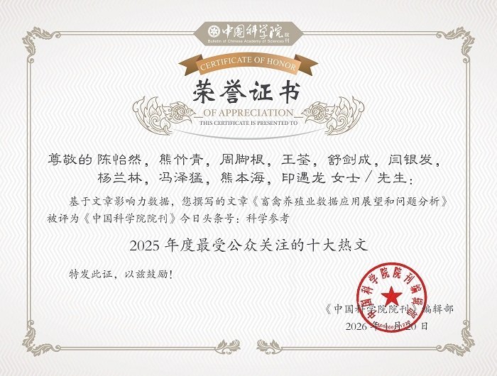 本次入选“科学参考”2025年度十大热文,充分体现了该论文在科学传播和公众关注层面的广泛影响,也反映出社会各界对畜禽养殖业数智化转型与数据要素市场化发展的高度关注。论文为推动我国畜禽养殖业高质量发展提供了科学依据和政策参考,彰显了学术研究服务国家战略需求的积极作为。