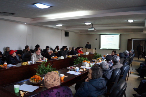 茶话会在老同志合唱歌声中开始。吴金水向全体退休老同志致以新年的问候。他还向老同志介绍了该所2014年在科研项目、学术成果、人才队伍、合作交流、园区建设、研究生培养等方面的总体发展情况,并对我院开展的“四个率先”计划以及我所创建“特色研究所”情况进行了介绍。王克林向老同志表达了亲切的问候并希望老同志多为研究所发展建言献策。
