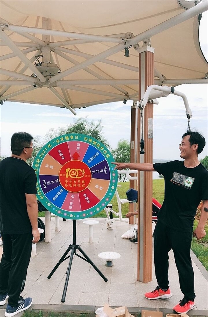 本次徒步健身活动以环松雅湖为全程,沿途设有个人游戏项目“丢沙包”“手忙脚乱”以及团体项目“一圈到底”“不倒森林”等趣味环节,参与者即可获得印章一枚。经过约两小时的徒步,所有人顺利到达活动终点。