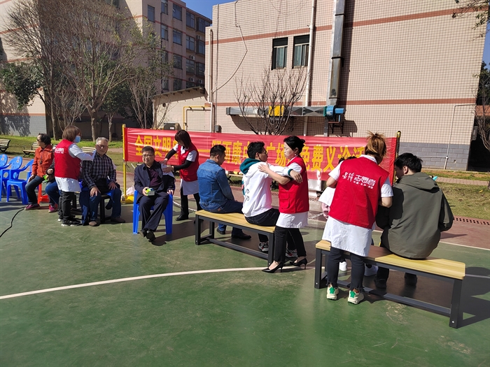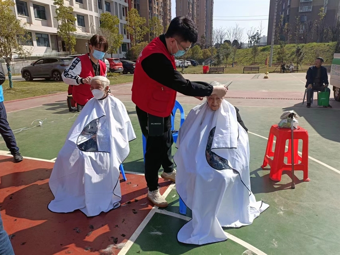 活动现场志愿者们各显身手,为研究所职工、退休老同志及园区住户免费提供理发、测量血压、测餐后血糖、磨菜刀、按摩、口腔及眼睛健康检查等服务。老同志们不急不缓的有序排队轮流理发,久坐伏案的职工走出办公室坐在一字摆开的长椅上享受肩颈按摩的放松,年轻的研究生们则关心视力的健康。大家纷纷表示,感谢组织的关心关爱,感谢社区和志愿服务队伍的暖心付出,切实为大家做好事,办实事,这样的活动很好!