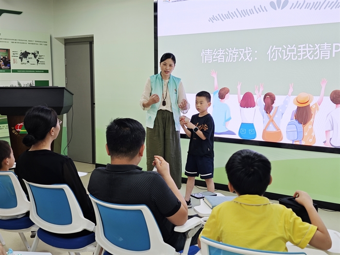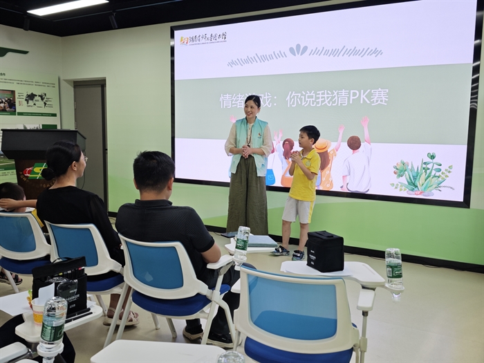 讲座特邀国家二级心理咨询师、情绪疗愈导师花开担任主讲,采用互动体验式教学。通过“情绪你说我猜”PK赛等趣味游戏拉近亲子距离,帮助参与者认识情绪表达的多样性;“把孩子当植物养”环节,用生动比喻阐释不同性格孩子的养育要点,强调因材施教的重要性;“爱的账户存钱与取钱”则通过情景模拟、亲子情绪涂鸦等方式,教授亲子沟通中的情绪管理技巧。