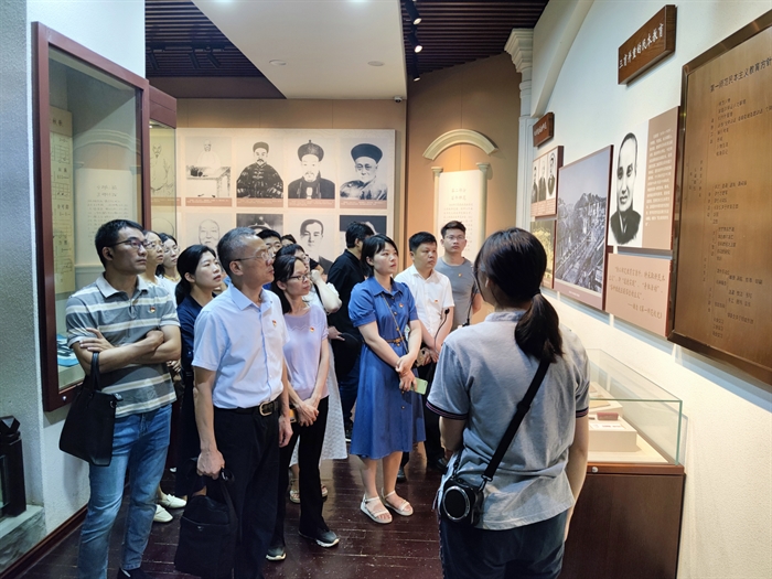 在湖南第一师范,活动参与人员跟随讲解员了解青年毛泽东求学、工作以及确定信仰、革命建党等方面的情况,通过一幅幅照片、一件件文物,现场感悟毛泽东等老一辈革命家探求人生真理,投身革命事业,为民族独立、人民解放和国家富强不懈奋斗的崇高精神和家国情怀。其中宿舍“三不谈”“不动笔墨不读书”和“时事通”等故事体现了青年毛泽东优秀的品格和逐步确立的初心与信仰,给每一位参观的同志带来深思和启发。