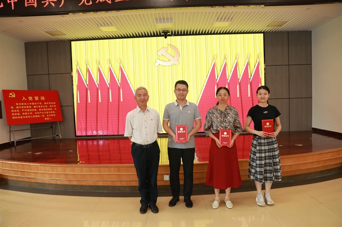 大会在庄严的国歌声中拉开序幕,在范德权带领下,新党员面对鲜红的党旗,举起右拳,庄严宣誓,在场党员重温入党誓词。
