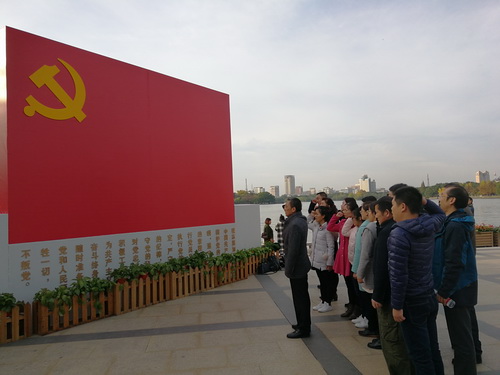 25日,支部党员一行首先瞻仰了位于上海市兴业路76号的中国共产党第一次全国代表大会会址。参观了《伟大开端——中国共产党创建历史陈列》展览,包括“前赴后继、救亡图存”、“风云际会、相约建党”、“群英汇聚、开天辟地”等专题展区,通过大量的实物、图片、雕塑和沙盘等,述说着中共一大十三名代表的生平事迹简介和中国共产党成立的艰辛历程。大家深深感受到前辈们立志建党报国的爱国热情和凌云壮志。之后,支部党员来到嘉兴瞻仰了南湖红船和南湖革命纪念馆。在南湖边,每位党员举起右手重温了入党誓词,共产党员的初心和使命要时刻牢记在心。