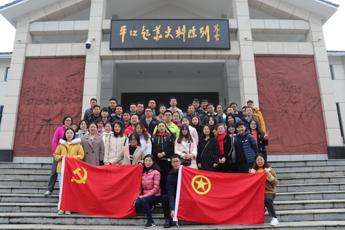 首先,大家参观了平江起义史料陈列馆、彭德怀铜像广场和平江起义旧址。平江起义史料陈列馆以事件发生时间为主线,大量的图片展示辅以文字说明,让大家了解到“举义平江城”,“共赴井冈山”和“转战湘鄂赣革命根据地”等内容,而在平江起义中涌现了一大批革命英雄,他们的英雄事迹和中国共产党人不怕牺牲、信念坚定、勇于献身追求解放的革命精神令大家感动。在彭德怀铜像广场,全体党员同志再次学习了新《党章》的第七章——党的纪律,并集体重温入党誓词,以此强化党员纪律和自律意识,发挥党员的先锋带头作用。平江起义旧址按原貌恢复陈列了平江起义领导人彭德怀、滕代远和黄公略的住房和会议室,以及起义士兵的营房、床、服装和武器等,当时作战环境艰苦,革命先辈们英勇奋战为人民谋幸福深深触动了大家。