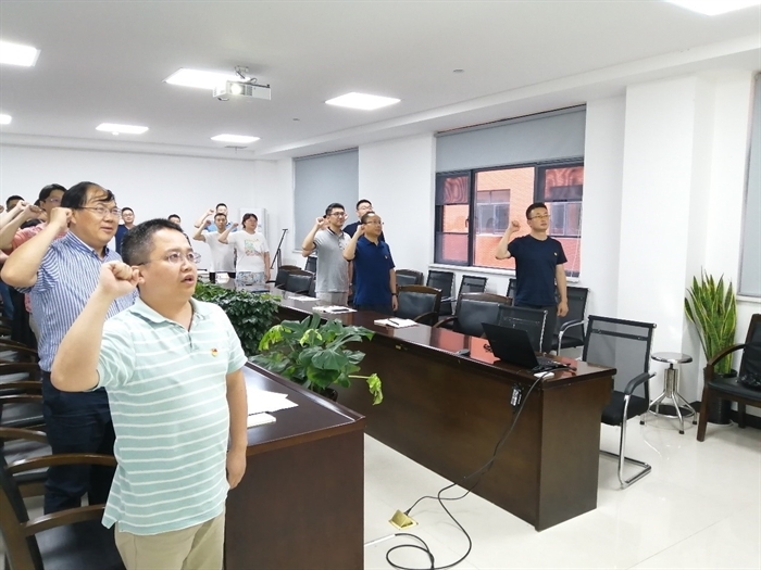 会上,岳跃民带领支部党员重温入党誓词,并就下半年党支部的各项学习教育工作的实施和相关工作进行安排。