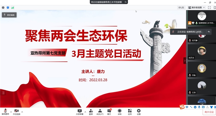 3月28日,中国科学院亚热带农业生态研究所第七党支部通过线上视频会议形式召开主题党日活动。会议由支部环江站党小组组长唐力主持,支部全体党员和入党积极分子参加。