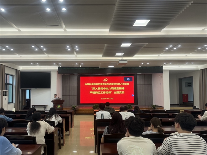 4月18日,中国科学院亚热带农业生态研究所第八党支部开展“深入贯彻中央八项规定精神 严明岗位工作纪律”主题党日。党委委员周传社到会指导。会议由支部书记谢聪主持,支部党员和入党积极分子参加。