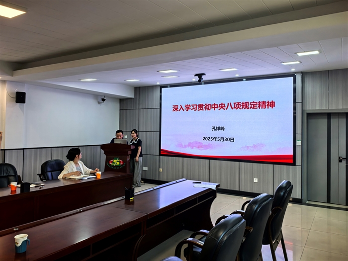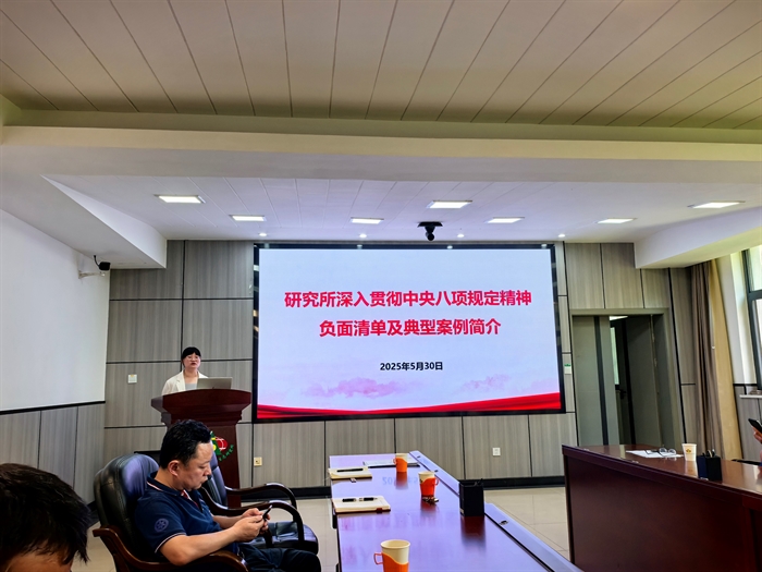 第八党支部书记谢聪结合研究所深入贯彻中央八项规定精神负面清单,从12个方面60条带领全体党员进一步学习贯彻中央八项规定精神,并介绍了研究所近年来巡视、审计发现问题典型案例,引导大家以案为鉴,做好对照检查并推动学习教育走深走实。