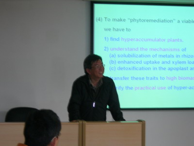 访问期间,Kōzō Iwasaki教授作了题为“农田污染Cd污染以及生物修复的可行性”的学术报告,详细介绍了日本农田土壤Cd污染的现状、对环境及人类健康的影响,植物Cd超积累的分子机制以及进行Cd污染生物修复的可能性。随后,参加了该所土壤养分组的seminar,并与有关科研人员及研究生就双方的研究兴趣及未来合作领域进行了充分的交流。会后Kōzō Iwasaki教授参观了中科院农业生态系统过程重点实验室。(葛体达供稿)