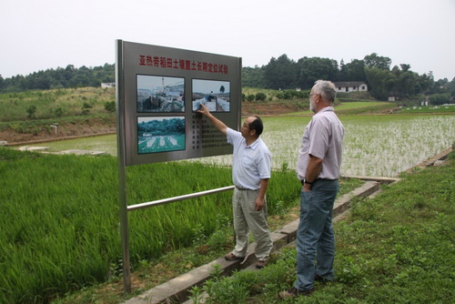 访问期间,Ron在魏文学的陪同下,前往桃源农业生态试验站进行了野外学术考察,Ron对该站进行的亚热带稻田土壤置土长期定位试验、施肥制度长期定位试验和烟草连作障碍试验表现出了浓厚的兴趣,希望能够加强同桃源试验站的深度合作,共同利用试验站平台开展国际合作研究。