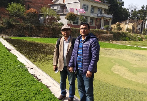 在亚热带生态所长沙农业环境观测研究站科技人员与留学生Dulal陪同下,Sarker参观了该站有机循环农业基地以及农村污水生态治理示范点。Sarker对亚热带生态所自主研发的农业污水生态治理技术给予很高评价,认为该技术简单、实用,非常合适孟加拉国国情。他表示孟加拉国人口密集、农业环境污染严重,希望未来能借助中国政府提出的“一带一路”倡议与亚热带生态所开展相关技术合作。