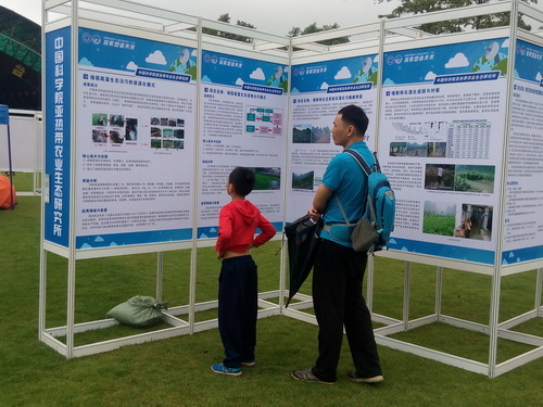 作为协办单位之一,中国科学院亚热带农业生态研究所积极参与此次活动,展示了绿色高效功能性氨基酸及微量元素螯合物技术创新及产业化应用、绿狐尾藻生态湿地治污及资源化利用模式、喀斯特石漠化成因与对策及其植被恢复与重建、洞庭湖东方田鼠成灾原因等研究成果。通过此次科普活动,向公众展示了亚热带生态所的科研优势领域及相关农业生态环境方面知识,增强了社会大众的农业生态环境保护意识。