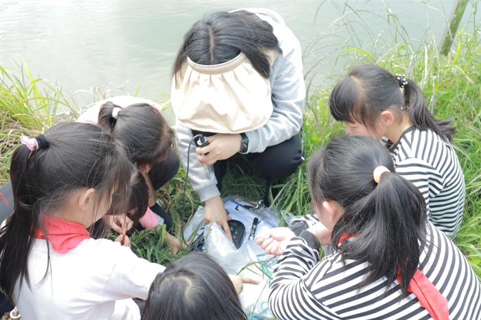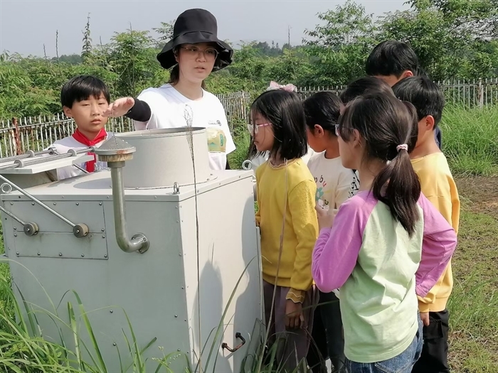 亚热带生态所张树楠副研究员、张苗苗工程师、杨正宇硕士、夏梦华博士带领学生们以“植物种类知多少”“稻田温室气体采集体验”“水质的奥秘解码”“探秘微观生态系统”等为科学探索主题,依托绿狐尾藻人工湿地、气象(大气沉降)观测园、温室气体排放监测静态箱、称重式蒸渗仪观测系统等场地和观测设备,开展了长沙站植物多样性调查、现场操作掌握水质检测的方法和过程,了解不同水体中水质参数的差别;了解稻田生态系统的组成,了解稻田温室气体排放的对环境的影响,认识到研究稻田温室气体排放的重要性;了解生态系统的主要构成主体,理解生态系统中的非生物环境及生命系统之间的联系和作用方式,增强学生对生态系统的理解。