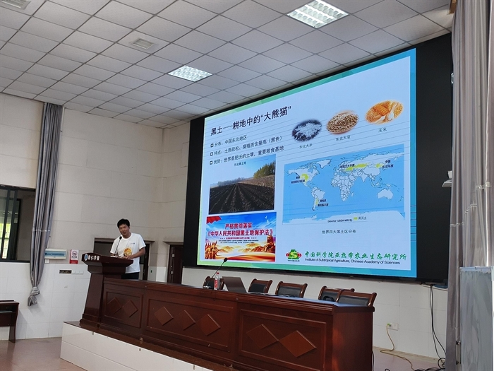 在教仁中学,张文钊副研究员以“土壤的自我介绍”“土壤形成的打怪升级之路”“土壤类型知多少”“土壤也有生老病死”以及一些土壤调查研究过程中的趣味小故事带领同学们走进土壤的奇妙世界,揭开它平凡外表下的科学奥秘与生态价值,让同学们了解土壤,意识到保护土壤的必要性,成为土壤的守护者。