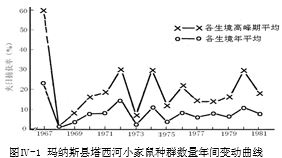 显然,各学派是从不同的侧面揭示了动物种群自然调节的各项重要因素。我们在北疆小家鼠种群上观察到,实际是多种内因和外因起着综合的作用,不同时期、场合,调节的主导因素不一样。小家鼠每次大暴发、小暴发,显然都同有利的气候和食物条件的保障与促发相关,尤其冬季温暖、厚积雪、多食物的作用甚大;而种群的内部条件,特别是生理生化状态、年龄结构等是否正处于上升态势,则起着基础性作用,若种群内部生理生化正处密度负反馈抑制状态,有利的气候条件就难生效。该种群的密度负反馈机制特别强势,可引发行为改变和内分泌变化,高密度下,个体间攻击行为烈化,肾上腺皮质增大、分泌加强,胸腺萎缩,垂体的生长激素和促性腺激素分泌受抑,终致生殖腺衰退,出生率下降,死亡率升高,种群增长逆转。而大暴发后期种群抗寒力极弱,翌年增殖力低下,则有可能是高密度期产生的子代基因型改变之故。遗传调节学说认为种群具有遗传多型,设想适于高密度的基因型具有高进攻性行为,繁殖力较低,并可能有外迁倾向。依天山北麓农区1967年及伊犂盆地农区1970年小家鼠暴发期间所见,这些迹象确实都有,秋季小家鼠成群结队迁移,夜间啮食儿童指趾和耳鼻,甚至还发生了群鼠围攻小猫的奇闻。高原生物所的研究者在1980-1981年间分5期到玛纳斯现场采取血样,进行北疆小家鼠血红蛋白(Hb)多态型电泳检测,分析其与种群密度的关系,结果观察到该种群有6种Hb多态型,种群密度越高,多态型数也越多,成分就越复杂;Ⅵ型只发现于种群小暴发的1980年10月采集的样本中,其频率很低,并含有泳动最慢的A成分。此型在其他季节未见,很可能属Hb罕见型。这一情况提示,种群密度不同时期产生的个体,确实可能存在基因型的差别,值得进一步探究。