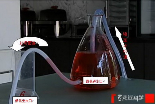 虹吸作用在日常生活中非常普遍,只要当出水点的高度低于进水点的高度,当有水流出的时候,那么,水就会源源不断的流出,直到储水器皿中的液体耗尽,或者当出水点抬高到一定位置(高于进水口)。例如,在没有抽油泵而要为汽车油箱加油的时候;公元前中国和古罗马城市供水管路中的倒虹吸应用;抽水马桶等等。