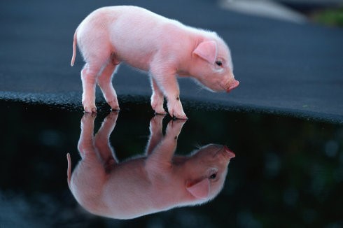 镜子经常被用来测试自我认知能力和高等智慧,大部分婴儿在18-21个月后,可以意识到镜子里面的人是自己。后来,逐渐发现猩猩、大象、海豚和几种鸟也有这个能力。现在有实验证明,猪也能够认出镜子里的自我,并且运用镜子的反射功能观察周围环境,找到食物。猪还会辨认形状,可以同三岁儿童一样把形状相同的木头归纳到一起。现在有研究发现猪经过特训,还学会了使用高科技,会享受计算机游戏,会根据室内温度调节暖气,它们还是唯一能够使用食物自