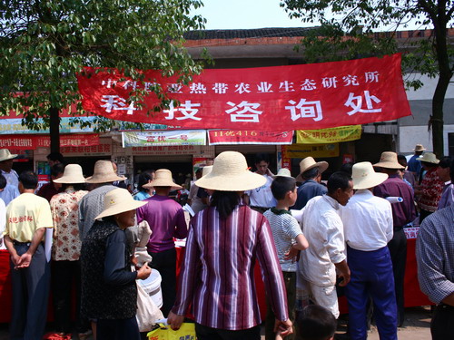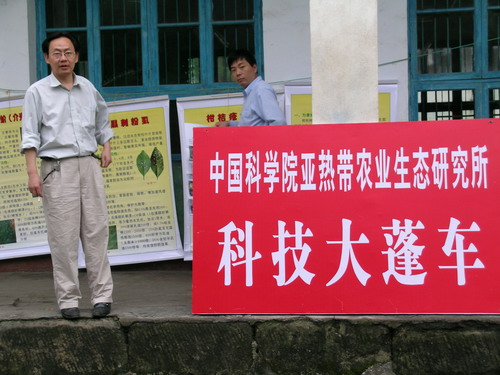 “科技大篷车”是中国科学院亚热带农业生态所科普活动形式之一。通过组织科研人员深入农村,进行科技讲座、科技咨询、发放科技资料和现场技术指导,向农民朋友传授农业科学知识和现代农业实用技术,现场解决农业技术难题,将“科技大篷车”开进偏远山区,颇受农民朋友的欢迎。