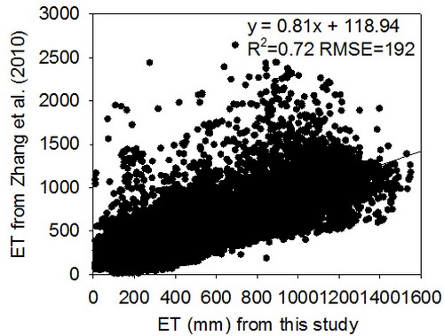 图3_Budyko平衡方程估算多年平均蒸散发的验证