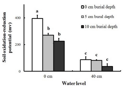 图1 不同淤积强度和水淹处理下土壤氧化还原电位的变化