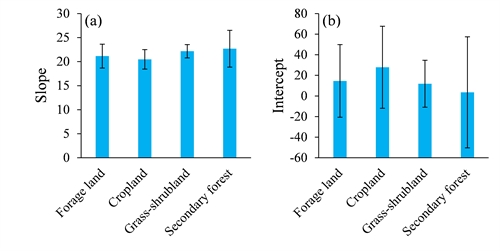 图2 典型喀斯特生态系统线虫体长和体宽拟合曲线的斜率和截距