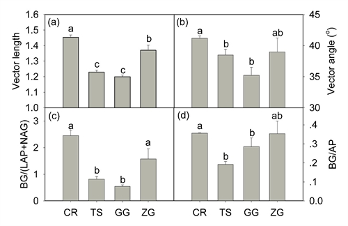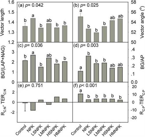 图1 不同农业转化策略对土壤微生物养分限制状态的影响