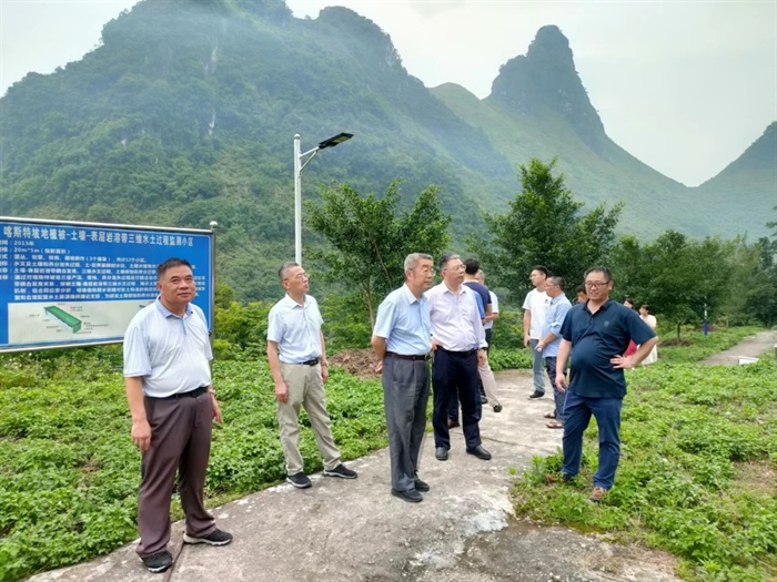 6月9日,中国科学院成都分院分党组原书记王学定、中科院光电技术研究所总工程师杨虎、成都理工大学教授何政伟等一行4人,到访中国科学院亚热带农业生态研究所环江喀斯特生态系统观测研究站,与亚热带生态所党委副书记文再坤、科技处副处长何寻阳、环江站副站长曾馥平和张伟组成专家组,对环江站承担的2018年度中国科学院“西部之光”人才计划入选项目进行现场验收。