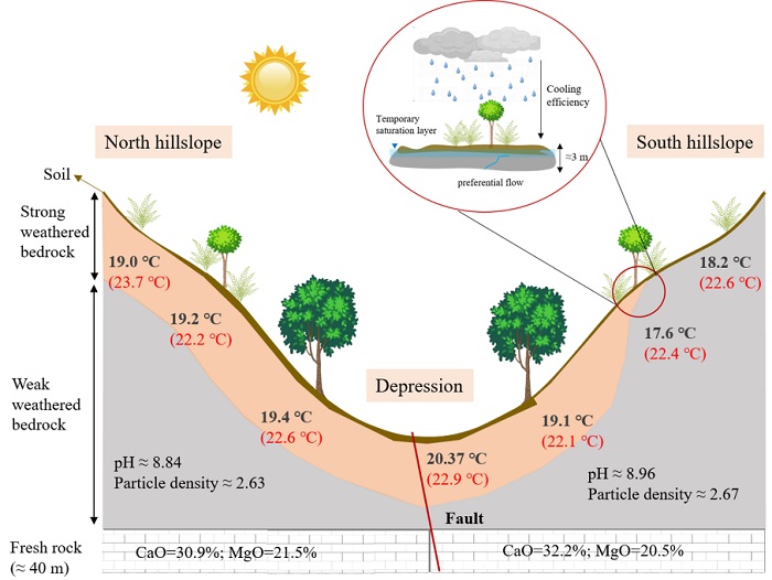 中国科学院亚热带农业生态研究所陈洪松课题组依托环江喀斯特生态系统观测研究站建立的喀斯特关键带观测平台,综合地球物理勘探、水文气象、机器学习等方法,量化了喀斯特小流域土壤-表层岩溶带厚度空间分布特征,明确了峰丛洼地小气候(温度-水分)稳定性及其影响因素,初步揭示了关键带结构对水文过程的影响。