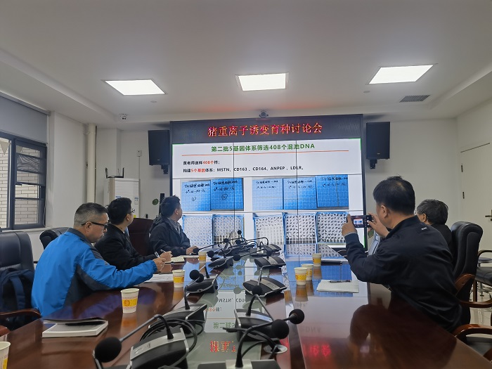 唐宇龙、韶也和黄雷分别汇报了猪重离子诱变的整体技术路线、诱变细胞培养条件优化、功能基因筛选、阳性突变细胞的测序及分型鉴定等方面的实验研究进展。参会专家讨论了重离子诱变技术在动植物育种工作中的应用以及实施过程中的技术关键点、拟解决的技术难点。牛冬分享了在基因编辑技术及克隆技术等方面的宝贵经验,以及为重离子诱变实验提供强有力的独特技术支持,其研究视角触及国际前沿。会议确定了下一阶段的研究重点。会议一致认为,整个团队必将在印遇龙院士的带领下,聚焦技术难点,采取切实可行的技术方案,加大力度推动猪诱变育种工作的实施,助推猪的育种水平迈上新的台阶。