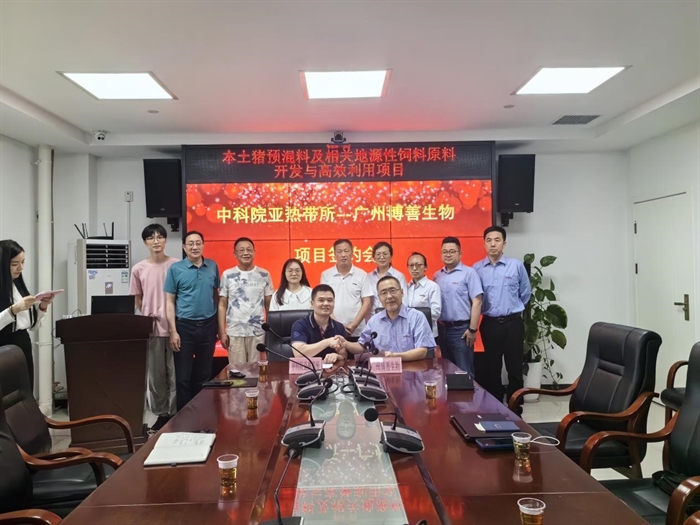 7月1日,中国科学院亚热带农业生态研究所印遇龙院士团队与广州博善生物科技股份有限公司在长沙举行本土猪预混料及相关地源性饲料原料开发与高效利用项目合作协议的签约仪式。中国工程院院士、亚热带生态所首席科学家印遇龙,科技管理与规划处处长刘守龙,畜禽健康养殖与农牧复合生态研究中心助理研究员李瑞,广州博善生物董事长潘军,农业农村部南京设计院中南分院院长刘平云,中国猪业高层交流论坛组委会会长李俊柱等出席。签约仪式由组委会秘书长曾蓉主持。