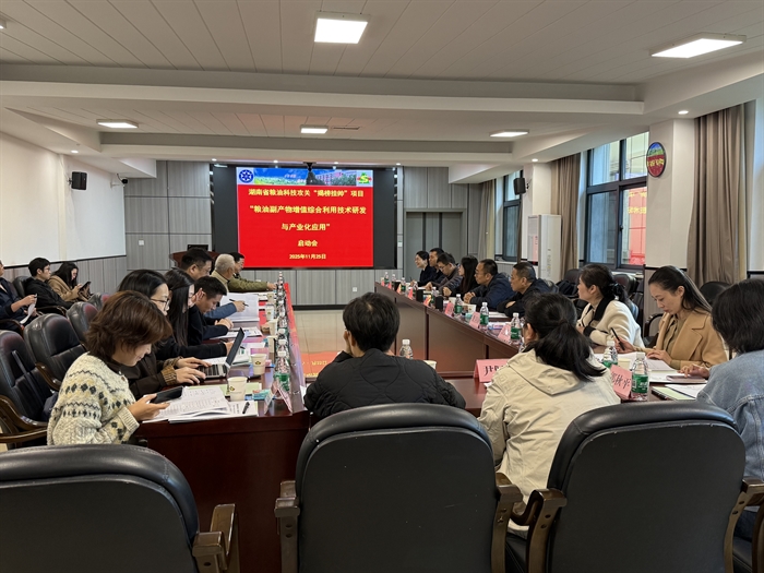 11月25日,由中国科学院亚热带农业生态研究所牵头的湖南省粮油科技攻关“揭榜挂帅”项目“粮油副产物增值综合利用技术研发与产业化应用”启动会在亚热带生态所召开。中国工程院院士、亚热带生态所研究员印遇龙,亚热带生态所党委书记、研究员谭支良,国家粮食和物资储备局科学研究院研究员李爱科,中南林业科技大学食品科学与工程学院教授林亲录,湖南农业大学动物科学技术学院教授范志勇,湖南省粮油产品质量监测中心副主任邓树华等项目咨询专家和项目组成员,以及湖南新五丰股份有限公司、湖南华亚机械有限公司、湖南赛福资源饲料科技有限公司等合作企业技术负责人参加会议。启动会由项目技术负责人、亚热带生态所研究员李凤娜主持。