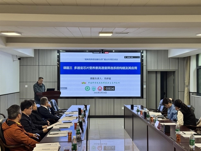 3月28日,由中国科学院亚热带农业生态研究所冯泽猛副研究员牵头承担的国家重点研发计划战略性科技创新合作专项“饲料营养代谢智能捕获与精准高效利用技术合作研究”(2025YFE0215200)启动会在长沙召开。中国农业科学院北京畜牧兽医研究所研究员唐湘方、北京市农林科学院信息技术研究中心研究员李斌、中山大学附属第五医院研究员李旸、长沙理工大学教授曹忠、华南农业大学教授邓近平、中国科学院亚热带农业生态研究所研究员李铁军等项目咨询专家;加拿大圭尔夫大学教授YANG SIMON YI(线上)及来自中国科学院动物研究所、中国农业科学院北京畜牧兽医研究所、中国农业大学、湖南农业大学、中国科学院亚热带农业生态研究所等项目参与单位的代表参加会议。