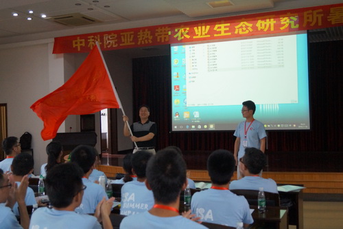 王新洪副所长为2016届夏令营营员授营旗