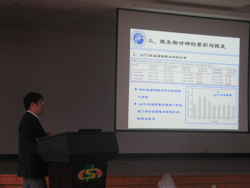 曾希柏作题为“微生物对环境中砷的生物累积、挥发及形态转化机制”的学术报告