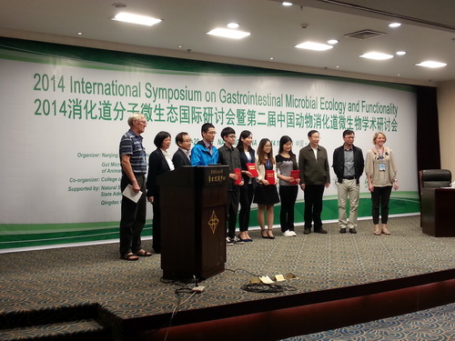 10月27至29日,“2014消化道分子微生态国际研讨会暨第二届中国动物消化道生物学术研讨会”在江苏南京召开,本次会议由南京农业大学和全国动物营养学分会动物消化道微生物专题组主办,浙江大学协办。来自中国、美国、英国、澳大利亚、加拿大、新西兰、韩国、日本等国家的200多位从事消化道分子微生态研究及相关工作的专家、学者及研究生等出席了本次国际研讨会。本次会议邀请了国内外知名专家就当前动物消化道微生物领域的热点问题作专题报告,重点围绕“肠道微生物区系,机体代谢与养分利用”主题与国内外同行开展学术交流与研讨。