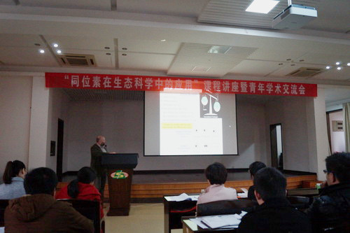 课程讲座上,中科院外籍特聘研究员、国家外国专家局高端外国专家,德国哥廷根大学Yakov Kuzyakov教授就同位素的示踪技术和应用,分馏效应的原理和应用、同位素示踪实验的设计原理与方法、同位素技术在土壤—植物—微生物互作研究中的应用、FACE试验中碳氮同位素技术的应用、碳氮同位素技术与微生物群落生态相耦联的技术原理与应用以及同位素数据分析等方面作了详细的报告。会议还邀请了亚热带公共技术服务中心袁红朝博士就同位素样品准备与同位素质谱仪使用方面做了交流。