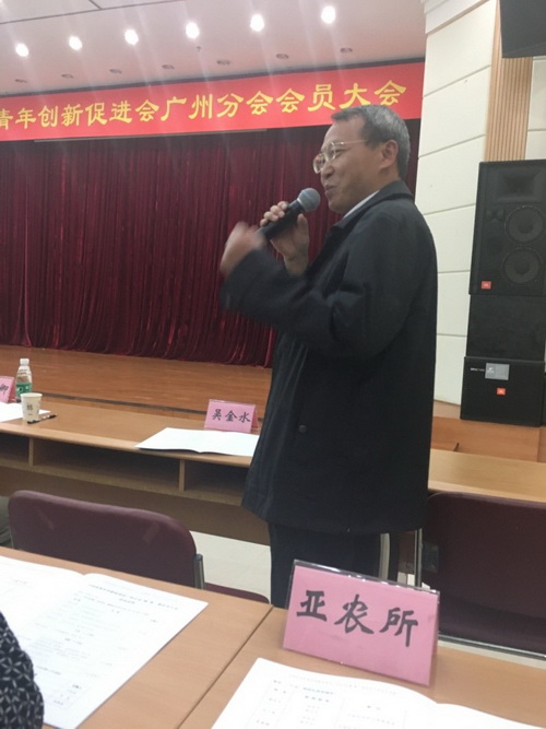 印遇龙作为发展战略咨询委员会代表致辞。他根据自己的成长经历,高度肯定了“青促会”所开展的工作,并对中科院“青促会”会员成长提出殷切期望。吴金水作为受邀委员对“青促会”广州分会的成立表示祝贺,肯定了“青促会”会员取得的成绩,同时也建议会员劳逸结合,希望大家在继续做好科研工作的同时多注意休息。本次会议选举了本届理事,王敏当选科研部理事,周传社当选外联部理事,赵杰当选科普部理事。